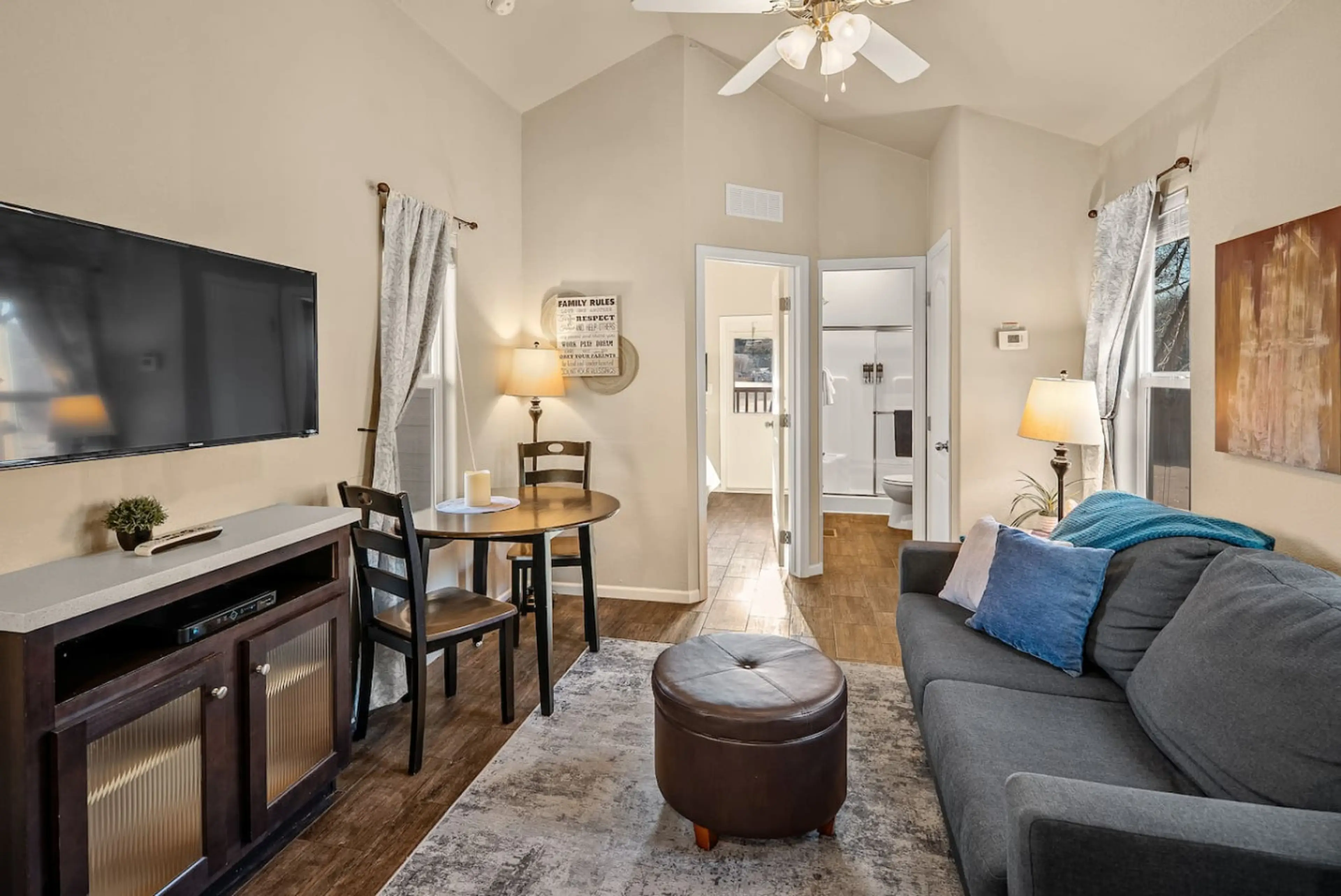 This cozy cabin nestled next to West Clear Creek is only a short drive to many popular destinations like the red rocks of Sedona, Jerome, Montezuma Castle, Fossil Creek, Flagstaff & more! Explore our trails along the creek under old growth trees. Come enjoy all our village amenities listed below. ...